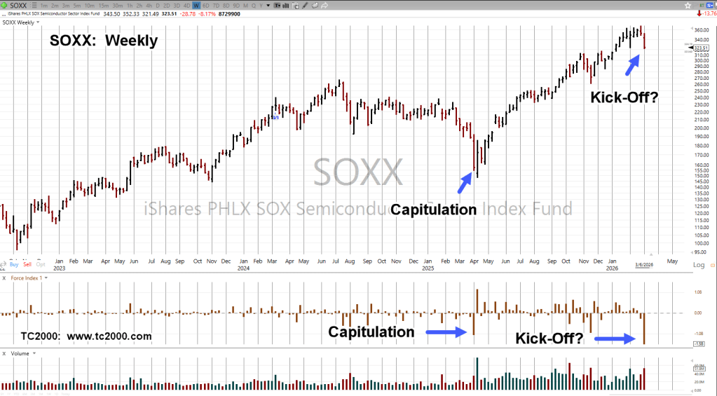 The semiconductor SOXX, ETF just had its largest ever, weekly downward thrust energy.