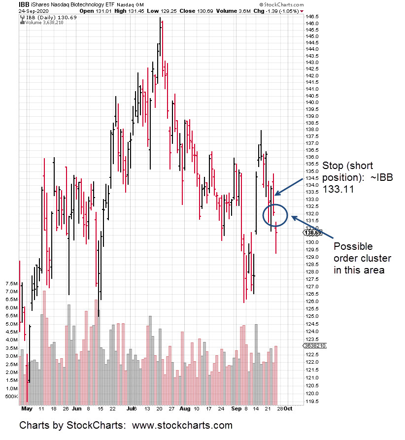 For those monitoring the short trade in biotech (IBB), the stop has been moved (not advice, not a recommendation) to the area around IBB, 133.11.