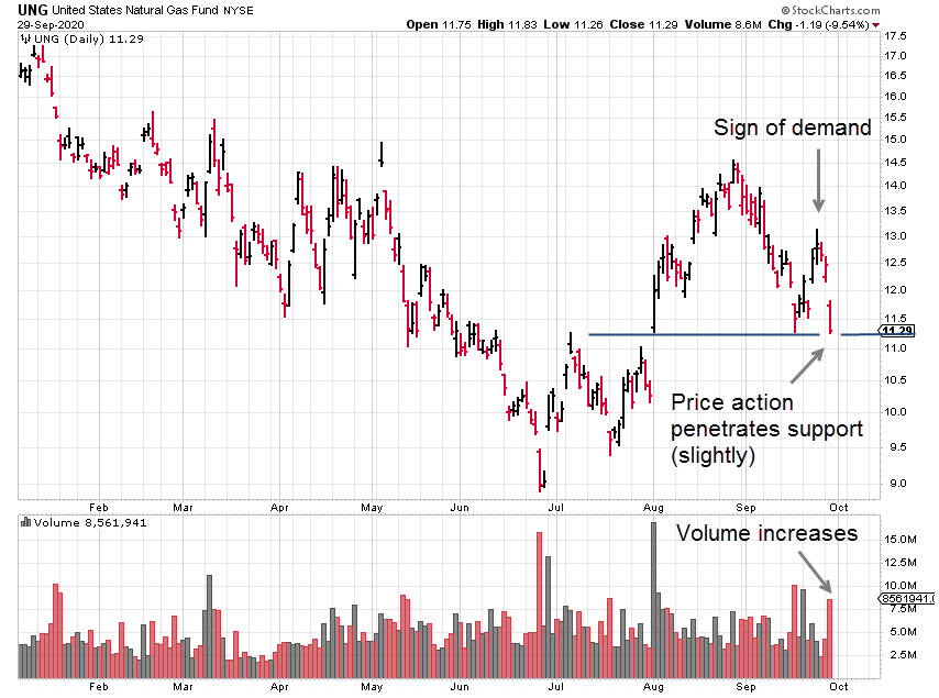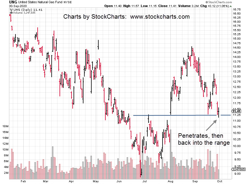 An obvious stop level (not advice, not a recommendation) would be last week’s low at UNG: 11.51