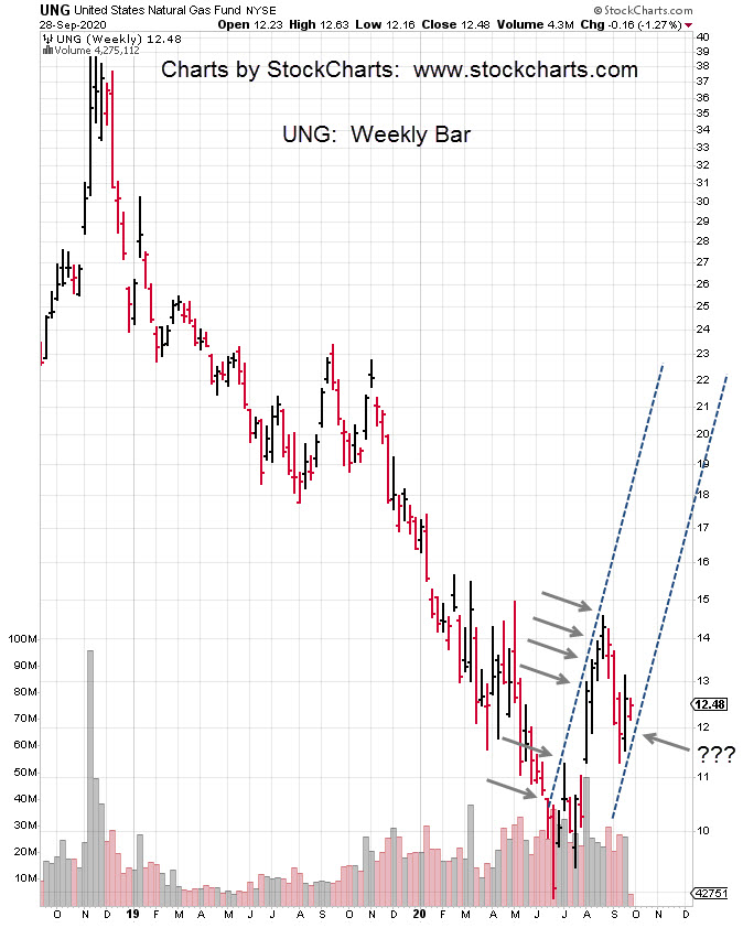 The 61.8%, retrace level (from the June low to the August top) for UNG is around the 11.04, area.