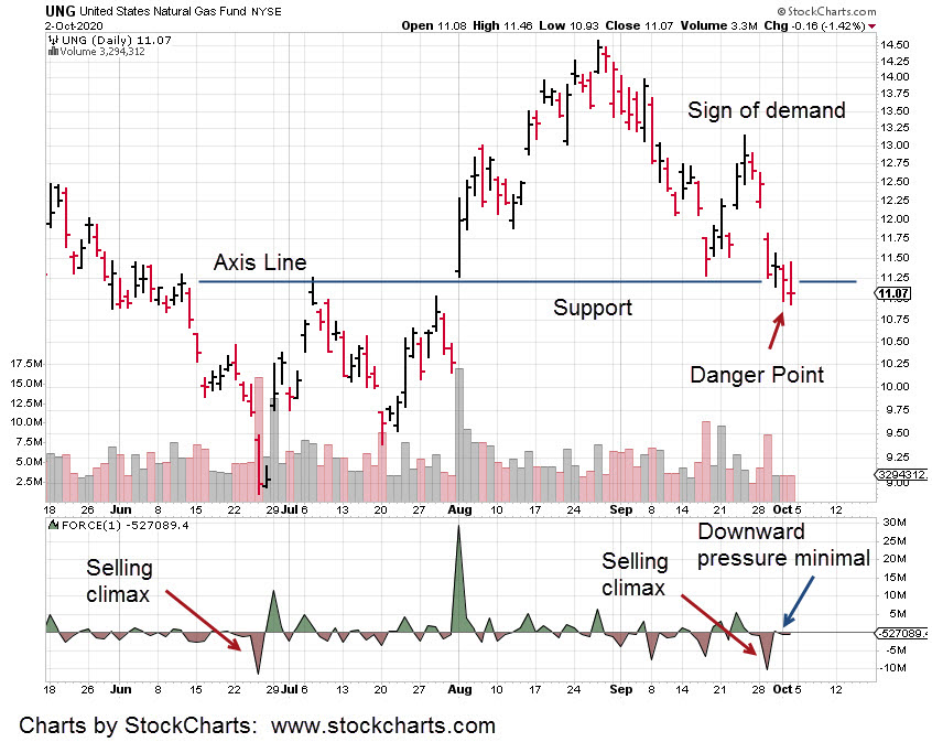 At this juncture, downward pressure on nat-gas (UNG) has evaporated.