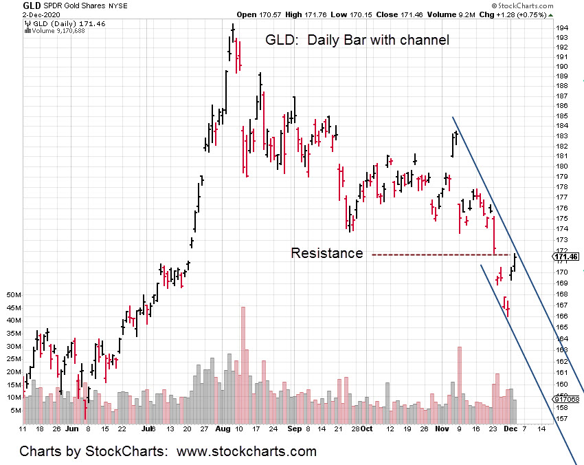 If the trend is in-effect as shown, GLD could reverse tomorrow or in the overnight session.