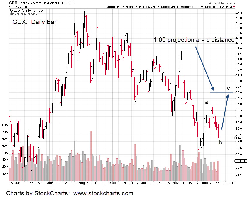 Like GLD, in this report, GDX looks like it’s correcting in a-b-c, type fashion.