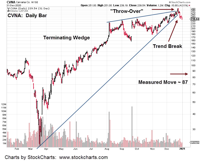 Measured move from the nine-month wedge projects CVNA to the 87, area; a -63.7%, decline from current levels.