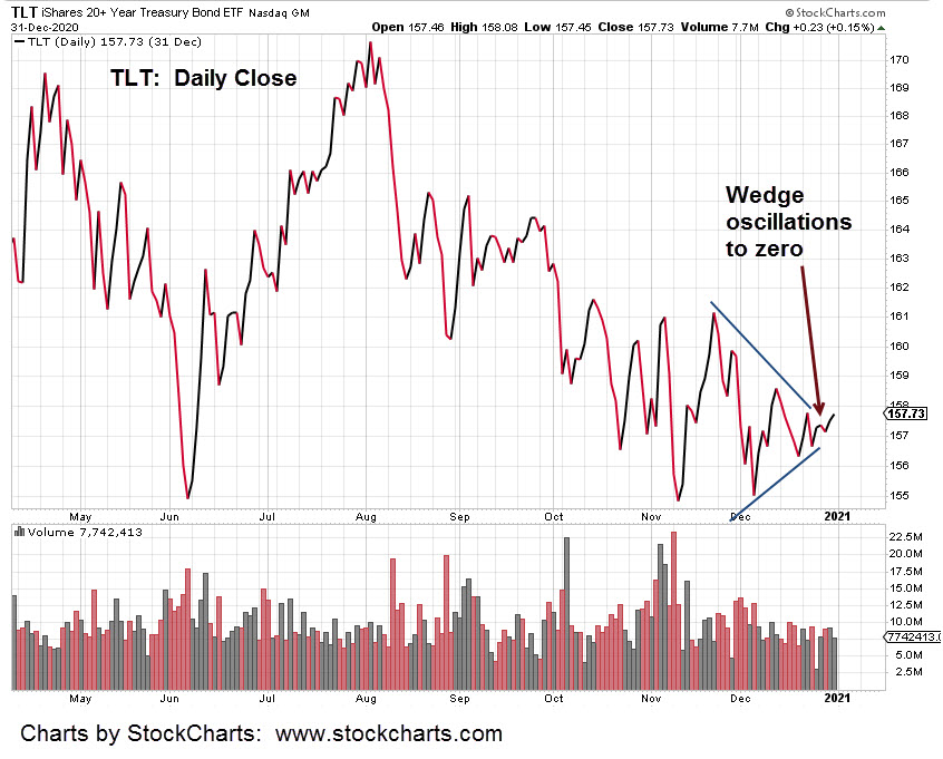For today’s chart of TLT, we’ll mentally swap every ‘bull’ notation from Wyckoff with ‘bear’ and conversely, every ‘top’ notation with ‘bottom’, every ‘buy’ notation with ‘sell’ and so on.