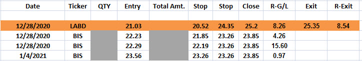 The LABD position was closed out as shown (above) and the BIS positions maintained.