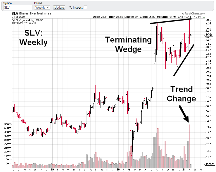 Massive volume in SLV, points to significant reversal.