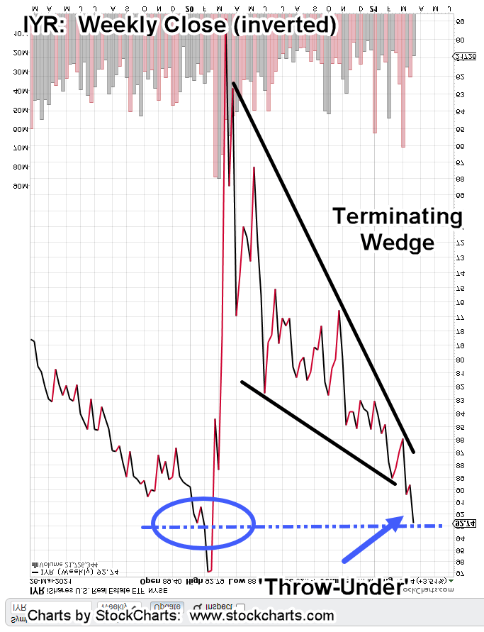 The weekly close of IYR has been inverted (turned upside down) to show the unique technical condition.