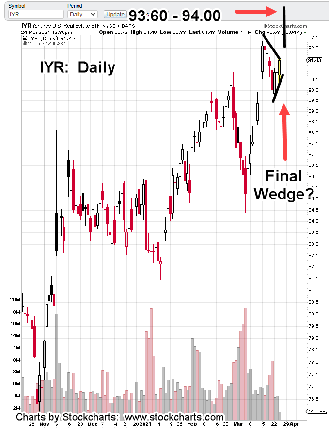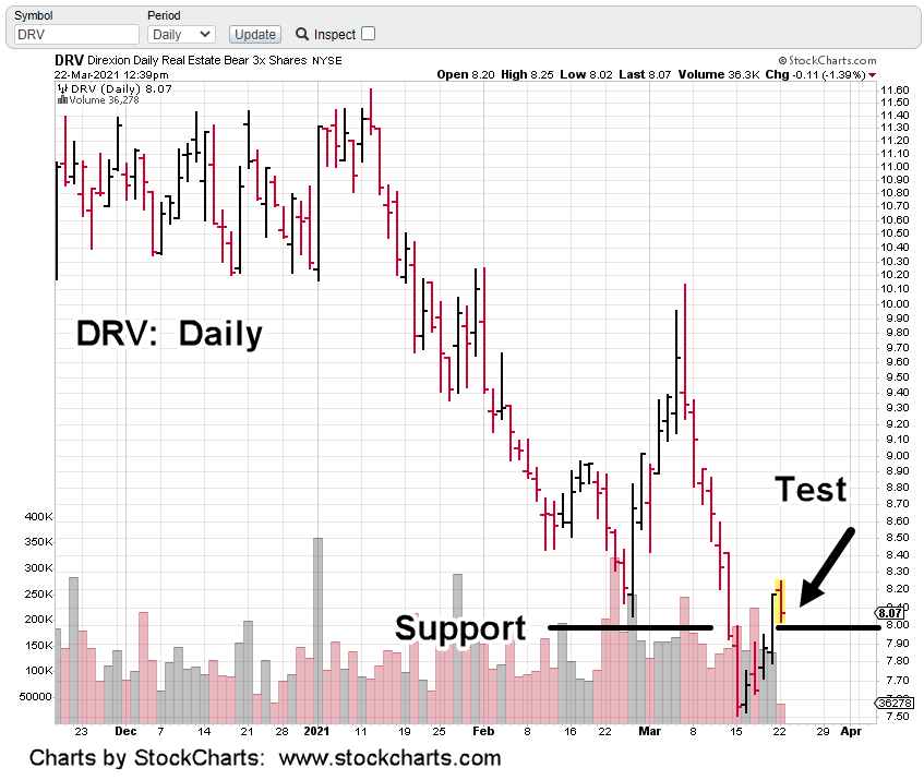 We’re at the extremes of price action. IYR and DRV do not need to go far to confirm or negate a reversal condition.