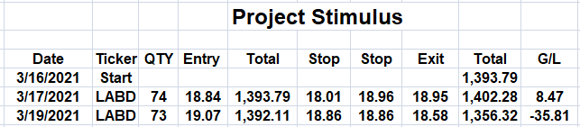 With 74 shares of LABD, entry point @ 18.835, we start the project; not advice, not a recommendation.