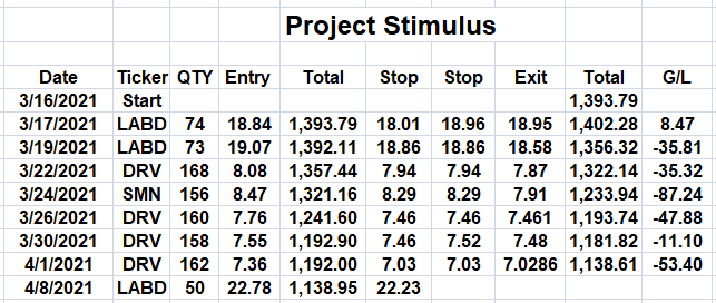 Despite the number of transactions shown in the Project Stimulus table (below), the objective is to minimize activity. We’re looking for a mid, to long term sustainable move; gain potential, 100% to 1,000%.
