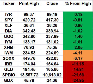 A prior update made somewhat of an error when it said ‘Of all the major indices, biotech on a percentage basis, is the downside leader.’