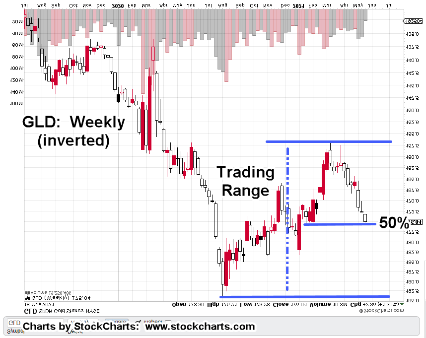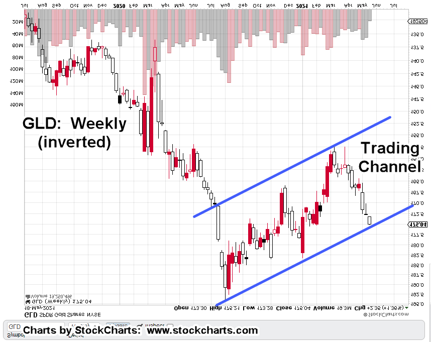 If GLD pivots lower, the dollar (UUP), could also make its move and reverse higher.