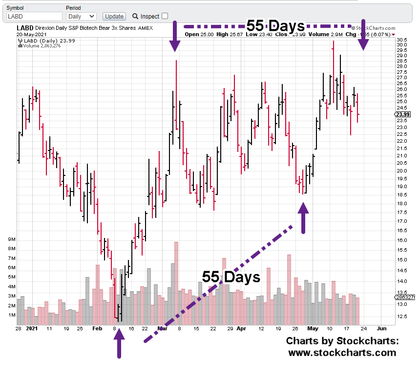 Today is Fibonacci Day 55, from the SPBIO, low set on March 5th, this year.