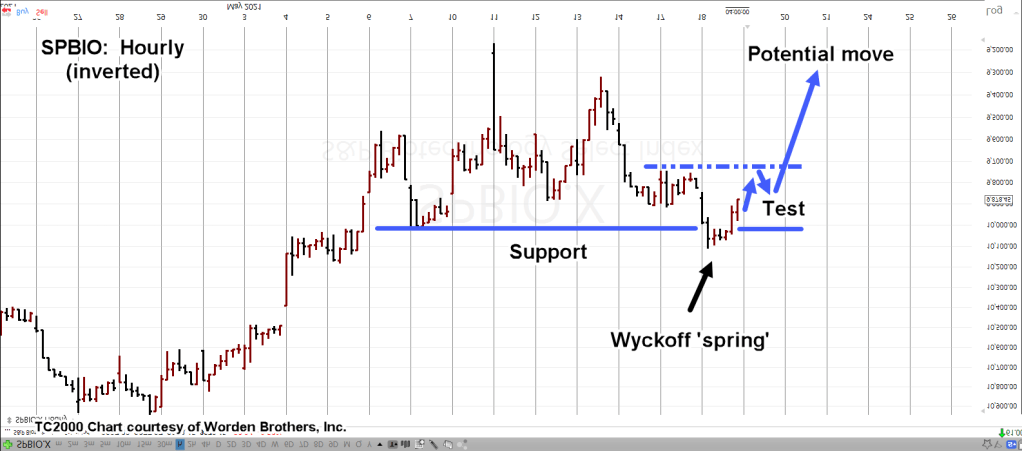 The original forecast chart for SPBIO (hourly inverted), has been updated to show where price action is at this juncture.