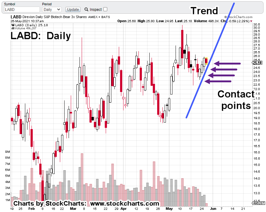 Daily chart of LABD, below: