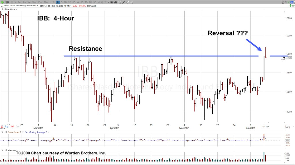 If IBB continues to push decisively upward from here, meaning, tomorrow’s session is follow-through action, it will most likely (but not fore sure) invalidate the ‘collapse’ scenario.
