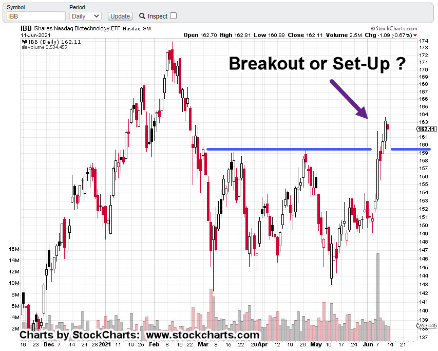 Although somewhat hidden, there’s another resistance level that for now is putting a limit on the upward travel of IBB.