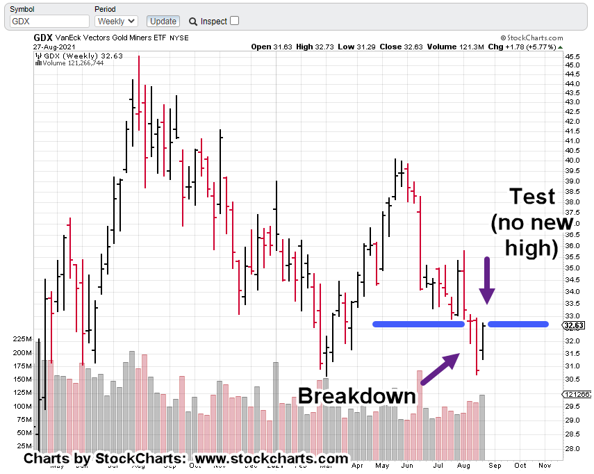 As detailed in this prior update, GDX is potentially on the verge of ‘free fall’ (not advice, not a recommendation).