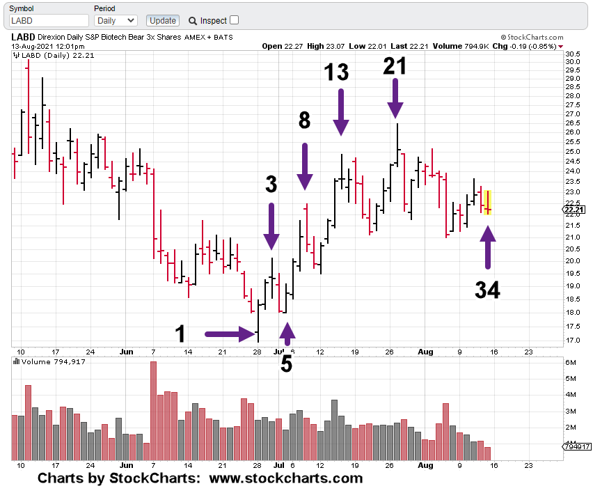 Biotech SPBIO and Inverse LABD In Fibonacci Sequence
