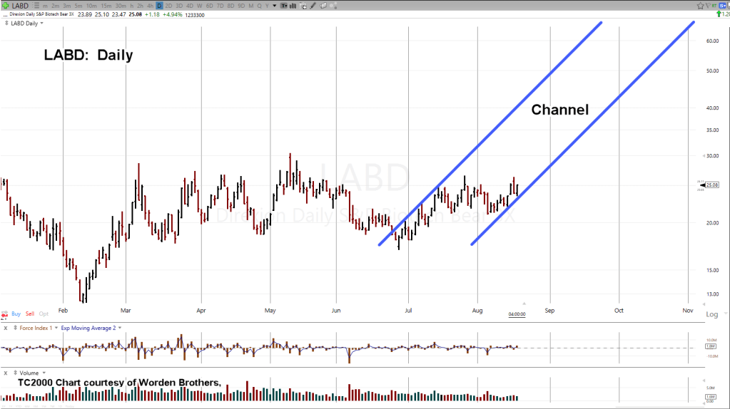 If there’s a decisive SPBIO break lower, the gain potential for inverse LABD is significant.