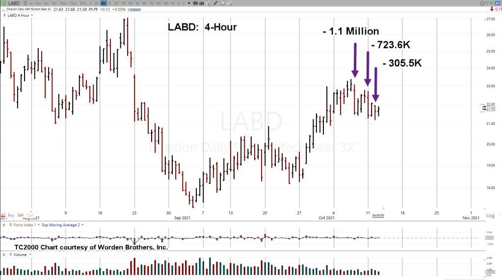 Volume in that bar’s 30-minutes was the highest since October 1st which was during a huge upward spike in LABD.