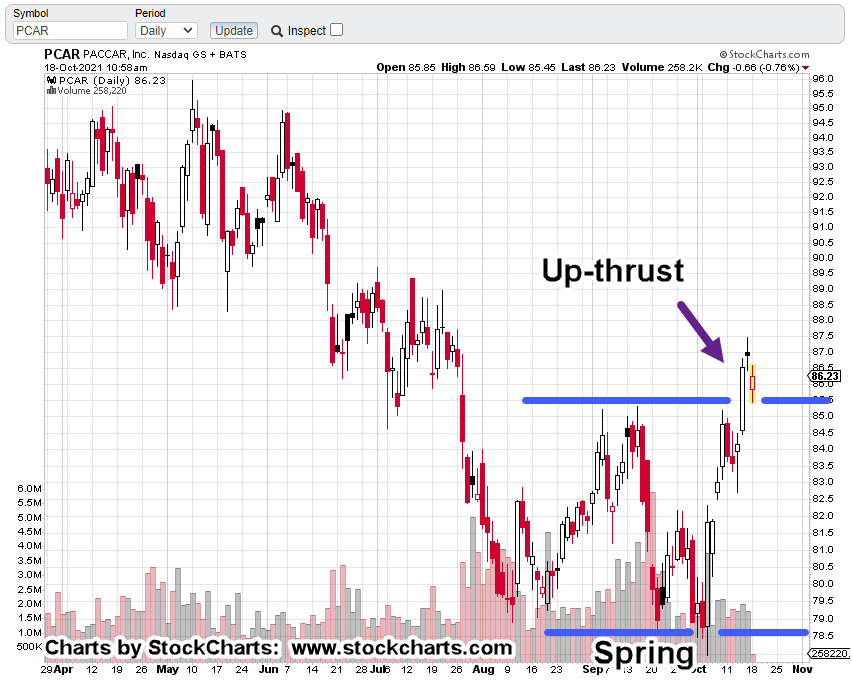 The price action thrusts below support that have been reported in prior posts were indeed spring set-ups.