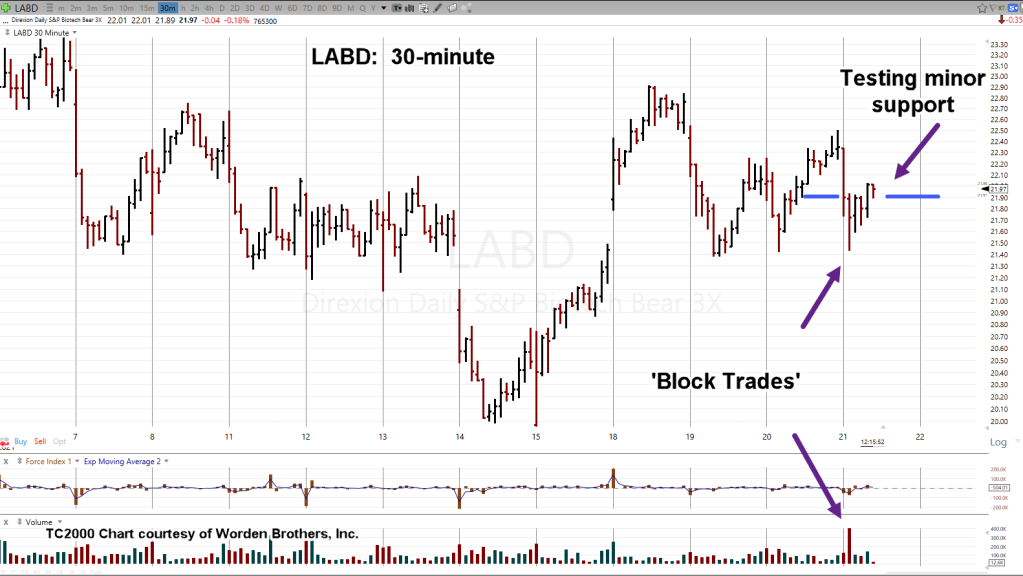 It looked like biotech inverse fund LABD was going through a standard ‘test’ and then secondary ‘test’ (not as common).
