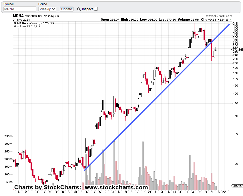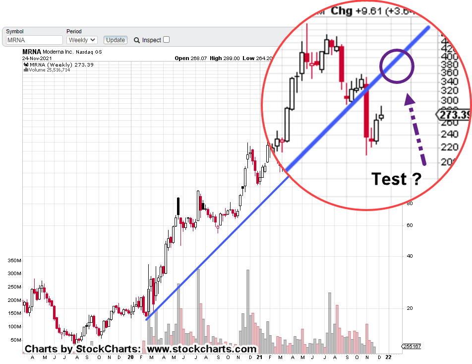 With all that happening as we speak, Moderna (MRNA) is finding itself potentially rising to test the underside of its trend line break.