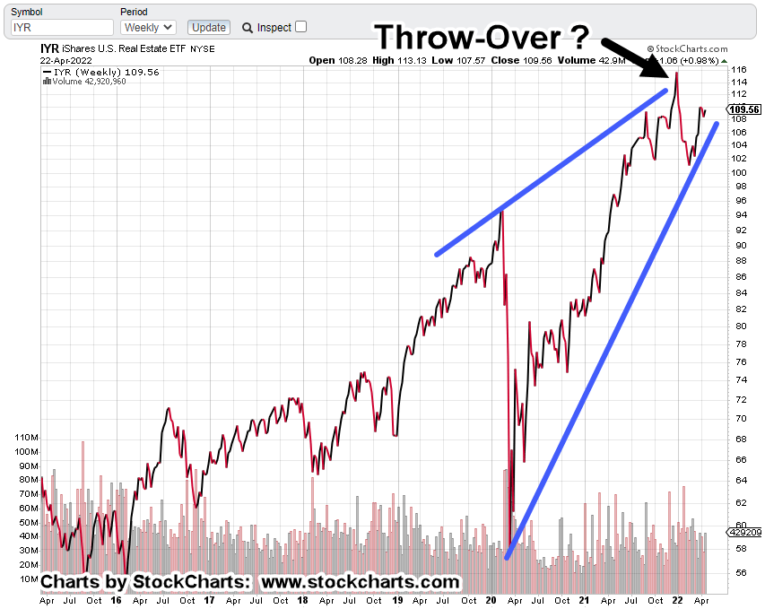 Instead of continuing lower, real estate IYR, moved higher. It’s now at another inflection point.