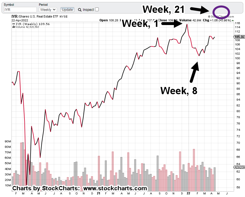 During the financial crisis, IYR, posted its low the week of March 6th, 2009.