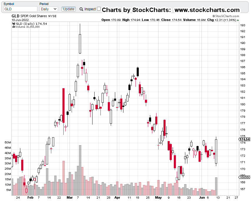That brings us to Friday’s action and the chart of gold (GLD), below.