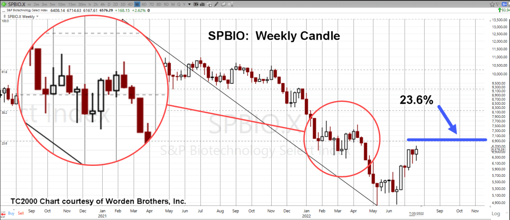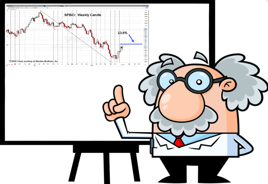 We’ll start first with the longer time frame; the weekly, to show that SPBIO is at or near a Fibonacci 23.6% retrace.