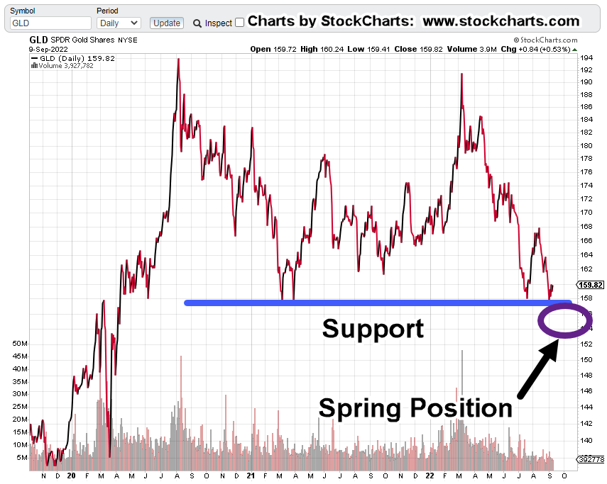 If or when GLD penetrates support, it would by definition be set-up in Wyckoff ‘spring position’.