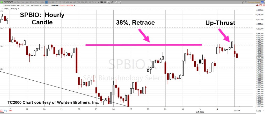 The hourly chart of SPBIO, shows the 38% retrace and reversal.