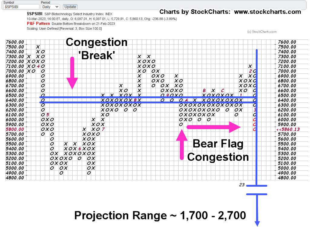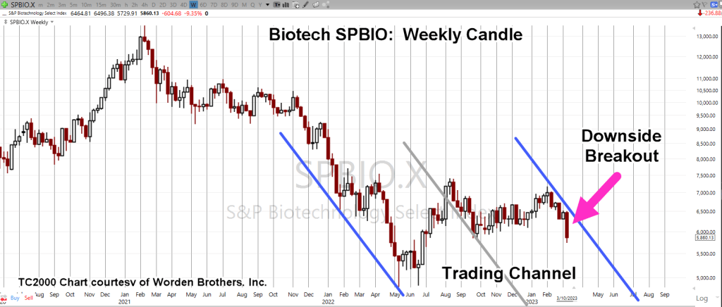 Biotech had been in a congestion zone, a bear flag, for an incredible five-months. There’s no other pattern like on the chart of SPBIO (ticker, $SPSIBI, on StockCharts).