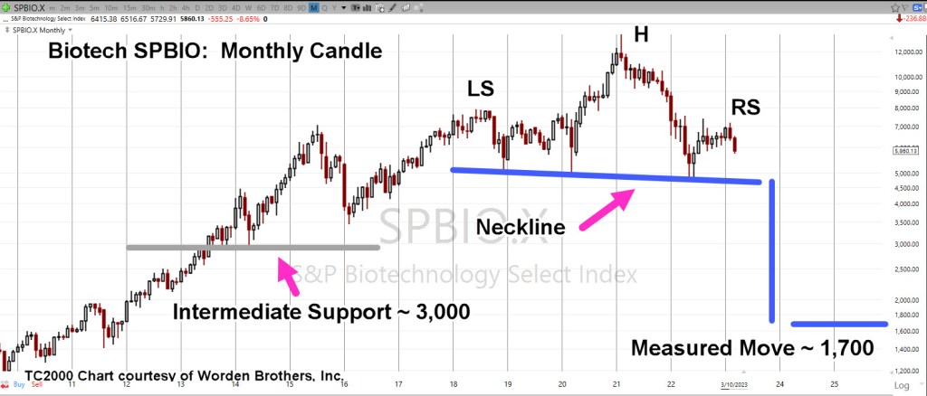 If the H&S pattern is in-effect and the neckline is broken, we have a measured move projection to the vicinity of SPBIO ~ 1,700 (not advice, not a recommendation).
