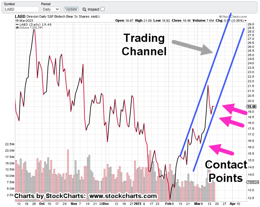 A short entry at the location noted (LABD 12.91) would now be yielding an open profit over + 50% (not advice, not a recommendation).