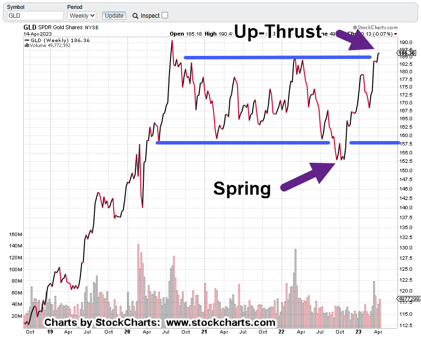 For the bulls, we’re looking for the GLD, highs to be maintained. If it can’t hold, there’s reversal trouble ahead.