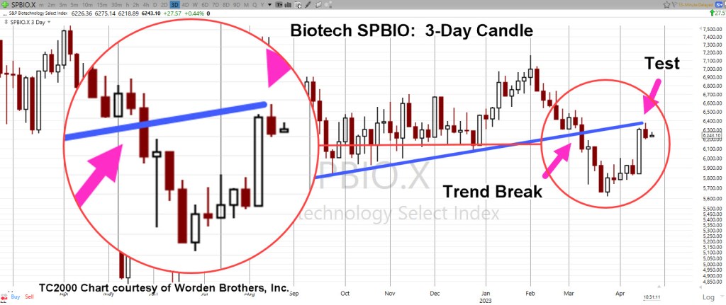 Moving closer in, on a 3-Day chart we see the break and test more clearly.