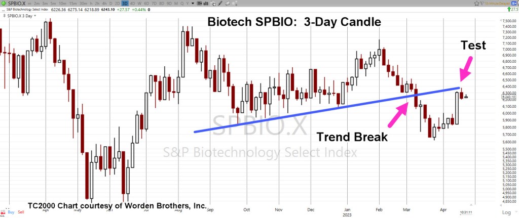 In our case, biotech SPBIO, broke down out of its bear flag, came back to test and now, may be continuing on its downward track.