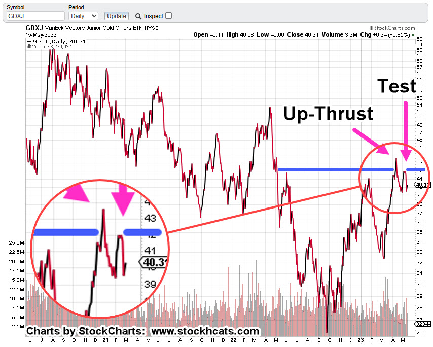 The last update on the Junior Gold Miners GDXJ, said they were hanging by a thread.