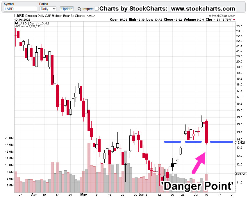 This sector has been the downside leader (LABD, higher) in the past so, we’ll see if that’s happening now.