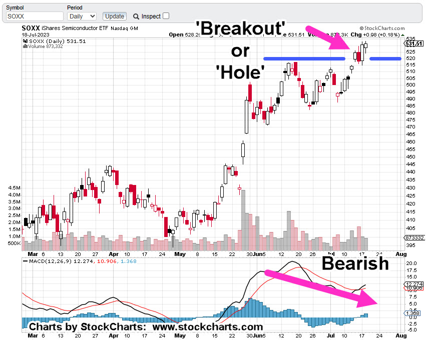 As the daily chart of SOXX shows, we either have a breakout or a hole that’s about to be filled (reversed).
