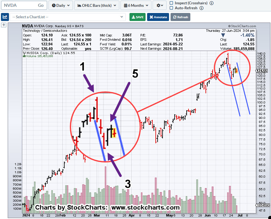 Now, we have this from Ed Dowd, link here (time stamp: 5:45, 8:30, and 9:40) saying NVDA, had an ‘exhaustion top’, posting on two timeframes.