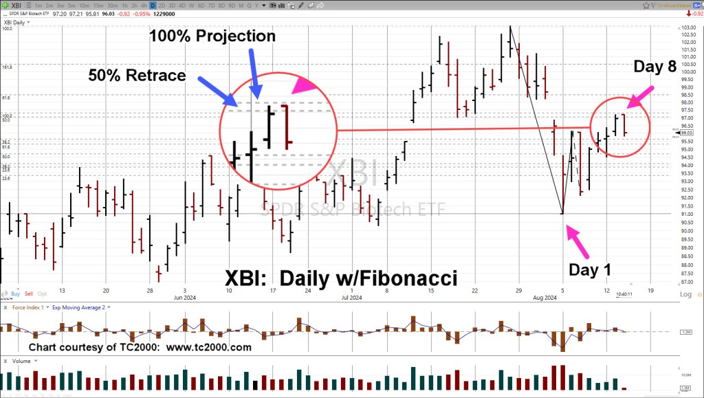 Biotech XBI, Fibonacci Day 8: Check