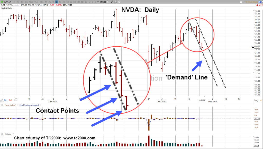 As of this post (10:47 a.m., EST), NVDA has sliced through support at the 129 – 130, level with ease.