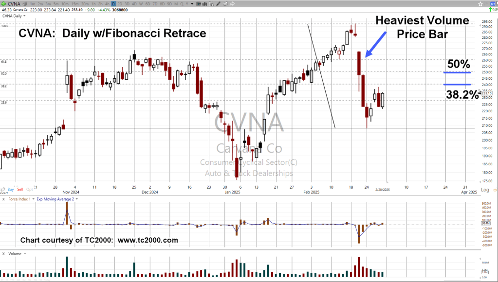 February 19th, after hours action, Carvana posted 310 as the high; then, three days later, the lows at 207.85:
