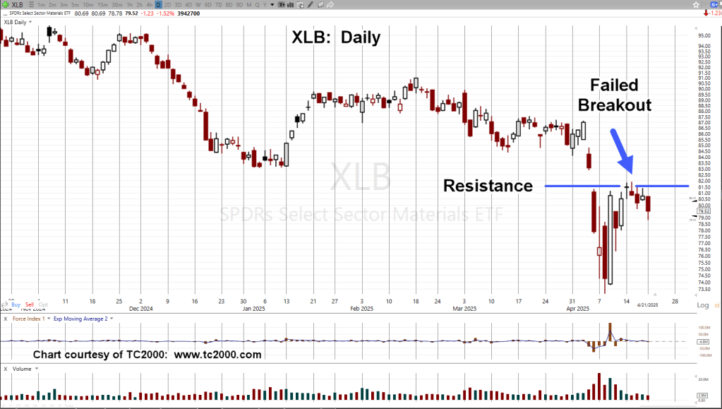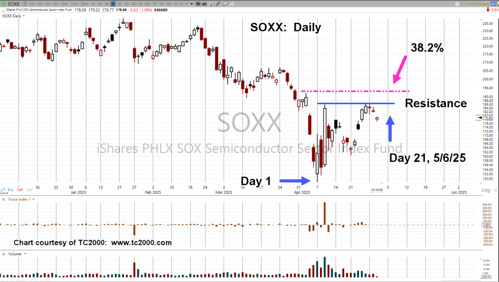 The SOXX, hit resistance, stopped, dropped, and could be rolling over for more downside … or not.