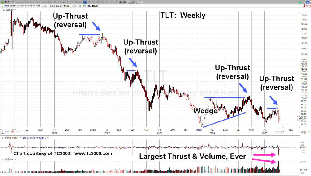 Borrowing from research and writings of Wyckoff, Weis, and Prechter, when we get such a huge thrust downward (chart below), it’s typically one of two events: